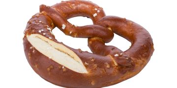 Freshly baked bread knot, soft and warm with a golden-brown finish and a generous sprinkle of salt. Contains wheat. Baked fresh daily!
